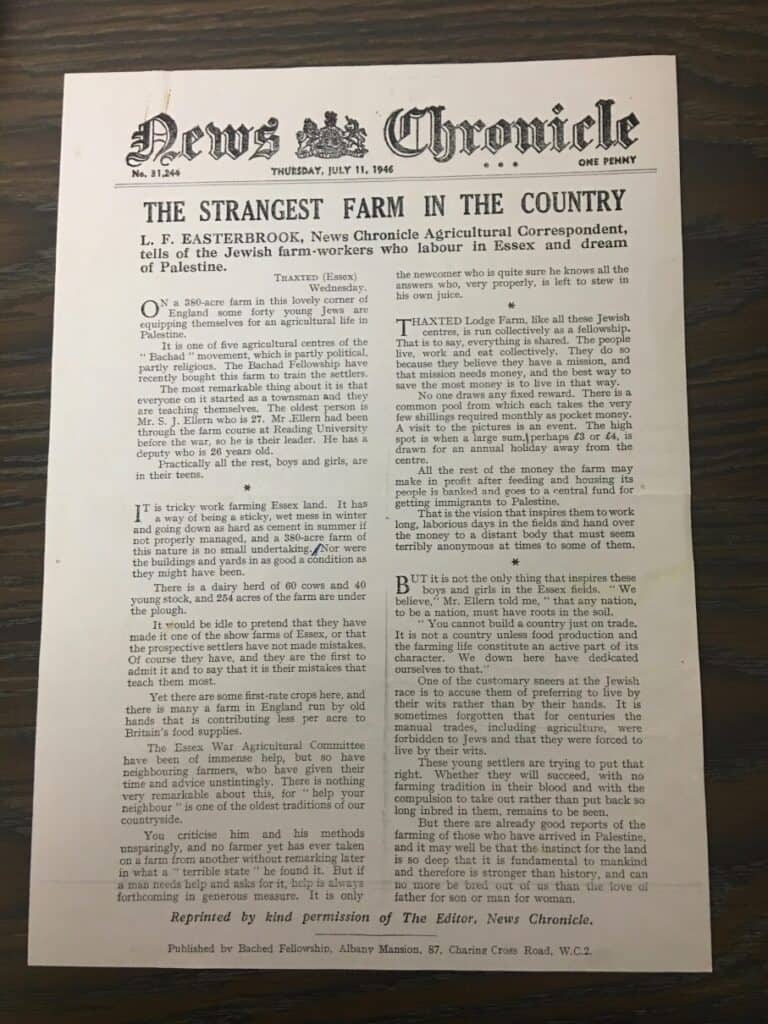 The Bachad Fellowship bought Thaxted Farm in September 1944.