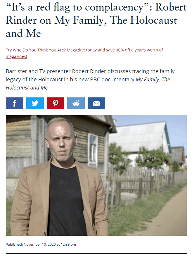 Feature in ‘Who do you think you are magazine’ on 10th November 2020 of ‘My family, the Holocaust and Me’