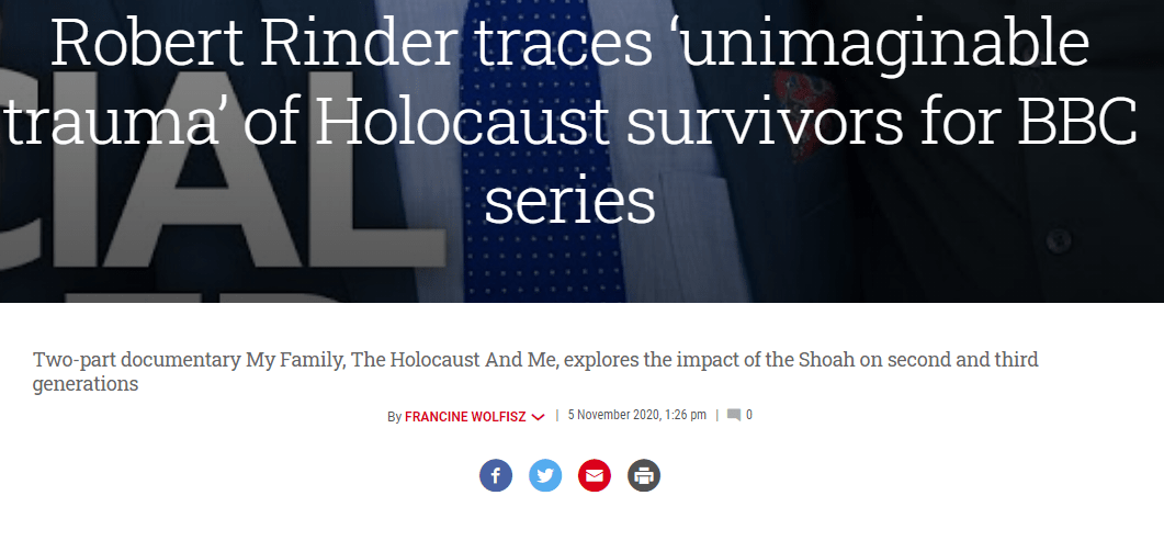 Interview in Jewish News on 5th November 2020 on ‘My family, the Holocaust and Me’