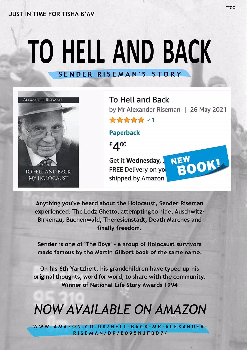 This is the story that Sender Riseman typed up for his grandchildren, word for word, unedited. There are no grandiose statements in this book and no revolutionary ideas. This is simply the story of an ordinary man who found himself in hell and managed to come back. Anything you've heard about the Holocaust, he experienced. The Lodz Ghetto, attempting to hide, Auschwitz-Birkenau, Buchenwald, Theresienstadt, Death Marches and finally freedom. Sender Riseman is one of 'The Boys' - a group of Holocaust survivors made famous by the Martin Gilbert book of the same name. 'The Boys' got their title because after the Second World War, United Kingdom offered to take children refugees from the camps. Only 732 could be found. He died in March 2016 at the age of 89 years old in London, UK after successfully building up a Jewish Orthodox family and lifestyle and merited to see a new generation with many grandchildren and all the family remembering his legacy.
